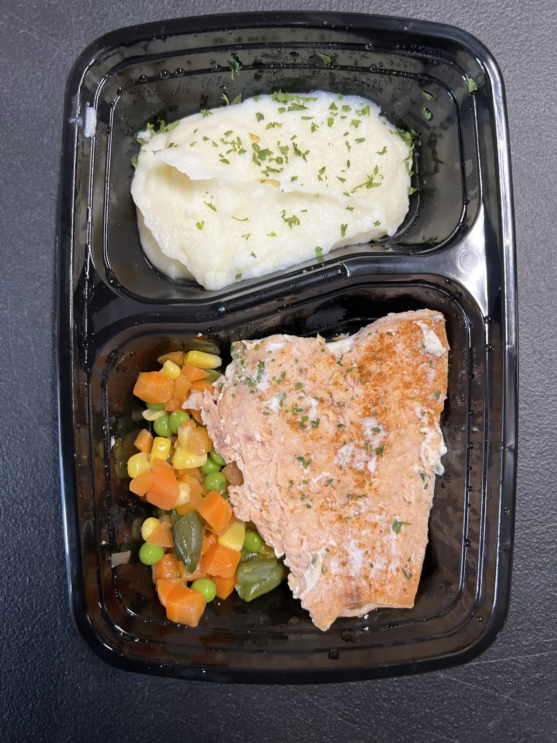 Soul Food Baked Salmon, Mixed Veggies & Mashed Potatoes